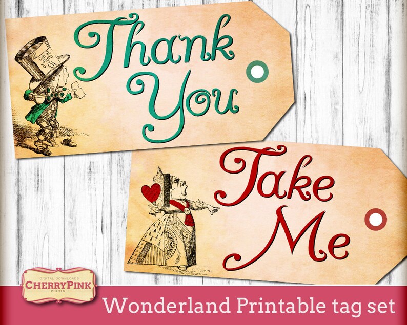 Vintage Alice in Wonderland Tags, Drink Me Tags, Eat Me Tags, Tea Part ... Alice in Wonderland Drink Me Tags and Eat Me Tags. These fun printable tags feature illustrations from the classic book placed on a vintage background. Perfect for your next tea party! Also great for bridal showers, baby showers, birthdays or Halloween parties! Available to you in two sizes in easy to use printable 8.5" x 11" collage sheets.