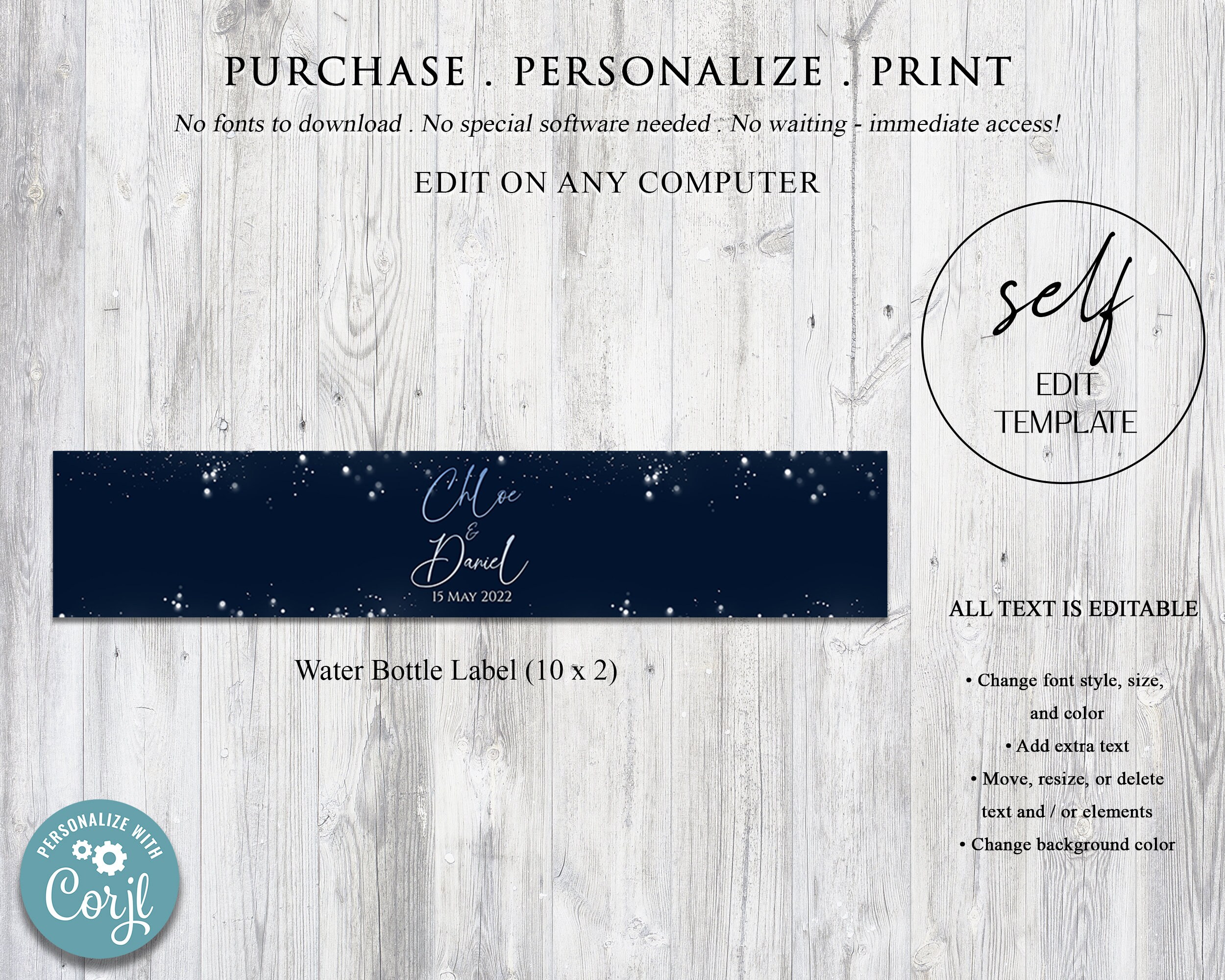 Diy Water Bottle Labels For Wedding / Navy Blue Wedding Water Bottle Label Water Bottle Labels ...