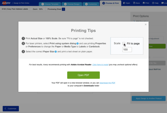 Avery labels l7160 not printing correctly