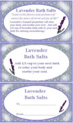 DIY Homemade Bath Salts With Free Printable Labels Use whatever essential oil combinations you like to create more varieties of bath salts. The orange one is a combination of 10 drops sweet orange oil and 15 drops lime oil. For the other one I simply used lavender oil. Click here to find the free printable bath salt labels I created just for you! Print the labels on sticker paper.
