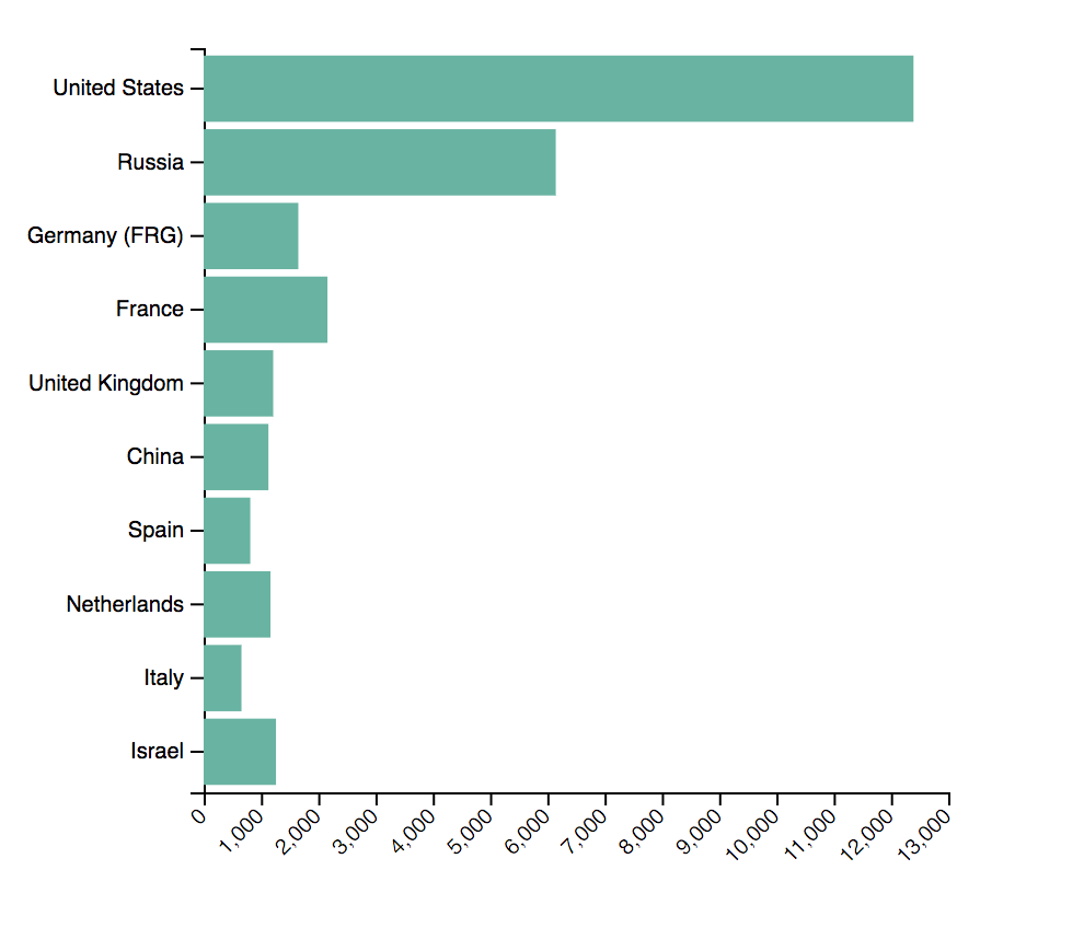 Making a bar chart — Scott Murray — alignedleft So the greater values of d (taller bars) will be more blue. Smaller values of d (shorter bars) will be less blue (closer to black). Labels Visuals are great, but sometimes you need to show the actual data values as text within the visualization. Here's where value labels come in, and they are very, very easy to generate with D3. D3 vertical bar chart with labels Jobs, Employment | Freelancer Search for jobs related to D3 vertical bar chart with labels or hire on the world's largest freelancing marketplace with 20m+ jobs. It's free to sign up and bid on jobs. [Solved]-D3 bar chart where axis labels are hyperlinks from data-d3.js With selection.call(d3.axisLeft(y)) d3 is adding an axis which is first of all a path element for the axis line and so called ticks for each label with a tiny orthogonal line at the respective position. Like many times, the element inspector is your friend, I encourage you to open it up in your browser and look at the resulting elements in your ... › d3js › create-bar-chartCreate Bar Chart using D3 - TutorialsTeacher Remember that the y-value here would be the tip of the bar since it is calculated from the origin and origin is at (0,0). And the output now is: Bar Chart in D3.js. We have created our data-driven visualization! Add Labels to Bar Chart. To add labels, we need to append text elements to our SVG. We will need labels for the x-axis and y-axis.